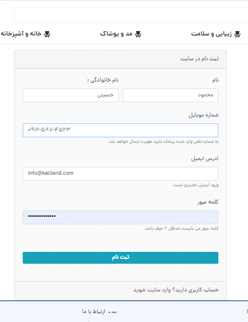 اطلاعات را وارد کنید و بر روی ثبت نام کلیک کنید.